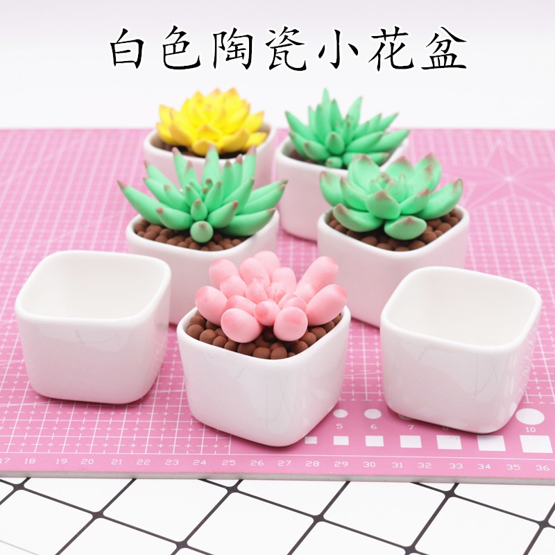 Baiyuan06現貨白色超輕粘土迷你多肉植物陶瓷桌面圓角小四方zakka肉肉盆栽花盆 蝦皮購物