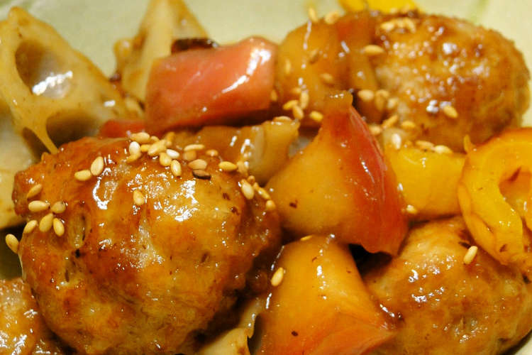 肉団子と野菜の素揚げ リンゴ甘酢あんかけ レシピ 作り方 By Neige クックパッド
