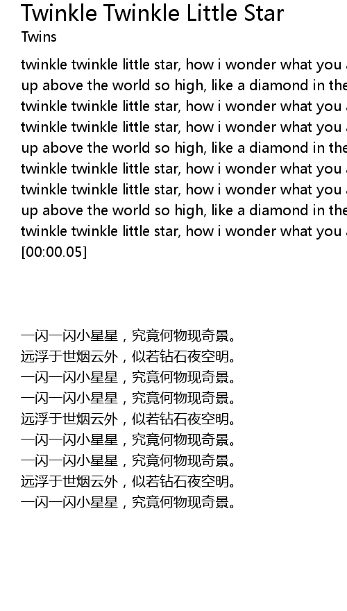 Twinkle Twinkle Little Star 歌词 歌词网